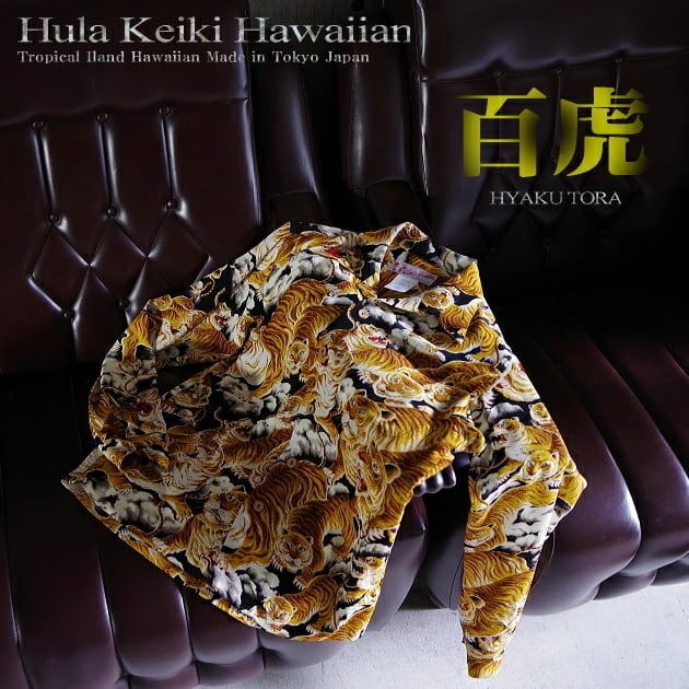 【メーカーお取り寄せ販売受付中】 【1-5日以内の発送予定】又は【1-3週間前後の発送予定】のメーカーお取り寄せの商品です。 ※発送時期はサイズにより異なります。サイズ選択の際に発送時期を記載しておりますが、メーカー在庫の都合により変更となる場合がございます。メーカー在庫のない場合はオーダーメイドとなり【1-3週間前後の発送予定】となりますのでご注意ください。 ★カラー:ブラックゴールド/カラーバリエーション(全8色) ■デザイン:百虎3 ■素材:レーヨン(チリメン)100% ■タイプ:開襟(第一ボタン止めループ付き)/ポケット柄合わせあり/前柄合わせなし/フルオープン/半袖 ■ボタン:天然ココナッツ(15MM、トップ11MM、予備ボタンなし) ■縫製:日本(MADE IN JAPAN) ■サイズ:2XS/XS/S/M/L/XL/2XL ■ブランド:フラケイキ ●やや大きめの日本サイズ 【表記cm】a.肩幅/b.袖丈/c.着丈/d.胸囲(一周) 【2XS】a.42/b.19/c.62/d.96 【XS】a.44/b.21/c.65/d.102 【S】a.46/b.23/c.68/d.108 【M】a.48/b.24/c.71/d.114 【L】a.50/b.25/c.74/d.120 【XL】a.52/b.26/c.77/d.126 【2XL】a.54/b.27/c.79/d.132 ・ドライクリーニングをお奨めします。 ・アイロンは、あて布中温でご使用下さい。 ・スチームアイロンは避けて下さい。 ・タンブラー乾燥は避けて下さい。 ・水洗いは風合い、光沢の変化、縮みの原因になります。 ・塩素漂白は使用しないで下さい。 ・生地の性質上、縮む場合があります。 ※ご注文後【1-5日以内】又は【1-3週間前後】の入荷(発送)予定となります。 ※店頭にて売り切れの場合があります。 ◎生粋の和柄ファンのハートをつかんだ名作「百虎」 和柄アロハファンだけでなく、アロハシャツ好きならいわずと知れた百虎。和柄アロハの最高傑作のひとつでもある通称「百虎」は、シャツの身頃一杯に迫力のある虎の群れが描かれています。正式名称は定かではないですが、メーカー呼称は「1000 Tigers」などど呼ばれ、カラカウア(KALA KAUA)が世に送り出した最初のブランドとされています。ヴィンテージ市場で最も人気の高い和柄のハワイアンシャツ"THE HUNDRED TIGERS"を国内ブランドのフラケイキハワイアンが再現しました。