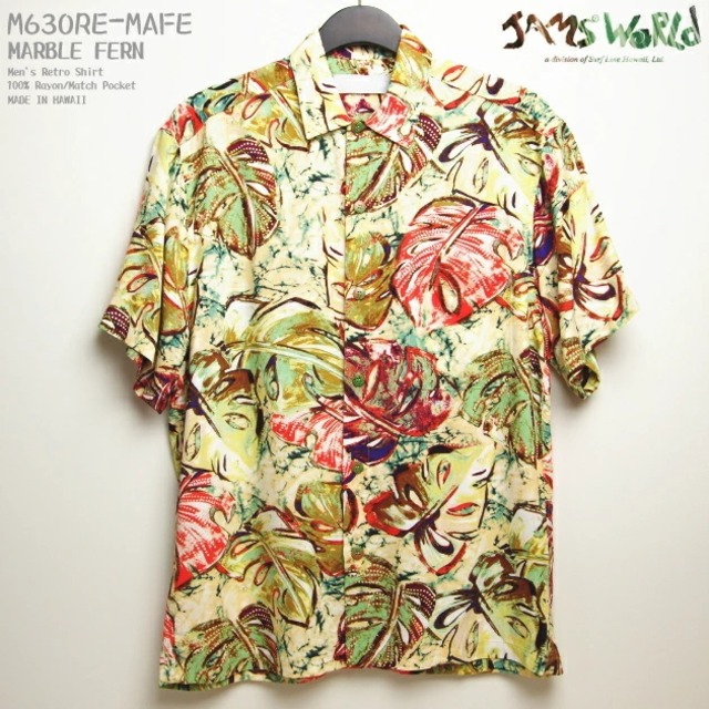 アロハシャツ|ジャムズワールド(JAMS WORLD)|M630RE-MAFE|MARBLE FERN(マーブル ファーン)|メンズ|ハワイ 製|レーヨン100% (100% rayon)|ノーマル襟(レギュラーカラー)|フルオープン|半袖|アロハタワー(アロハシャツ販売)