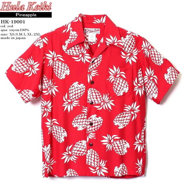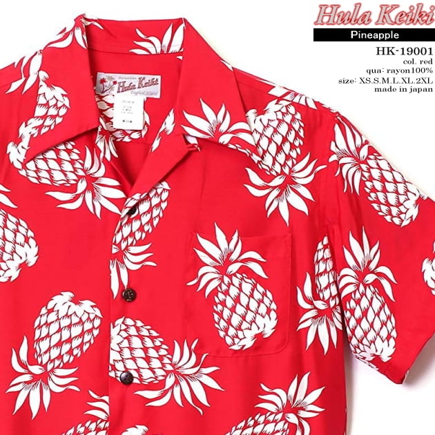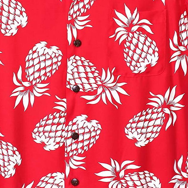 アロハシャツ|フラケイキ ハワイアン(HULA KEIKI HAWAIIAN)|マカナレイ(MAKANALEI)の姉妹ブランド|HK-19001(19012)パイナップル(PINEAPPLE)|レッド|メンズ|レーヨン100%|開襟(オープンカラー)|フルオープン|半袖|アロハタワー(アロハシャツ販売)