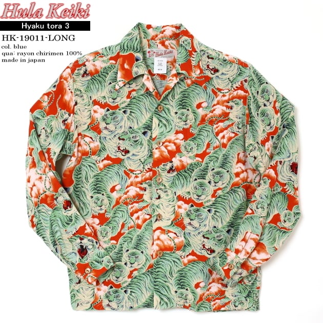 長袖アロハシャツ|フラケイキ ハワイアン(HULA KEIKI HAWAIIAN)|マカナレイ(MAKANALEI)の姉妹ブランド|HK-19011 百虎3(HYAKU TORA)|レッド|メンズ|レーヨン チリメン100%|開襟(オープンカラー)|フルオープン|長袖|アロハタワー(アロハシャツ販売)