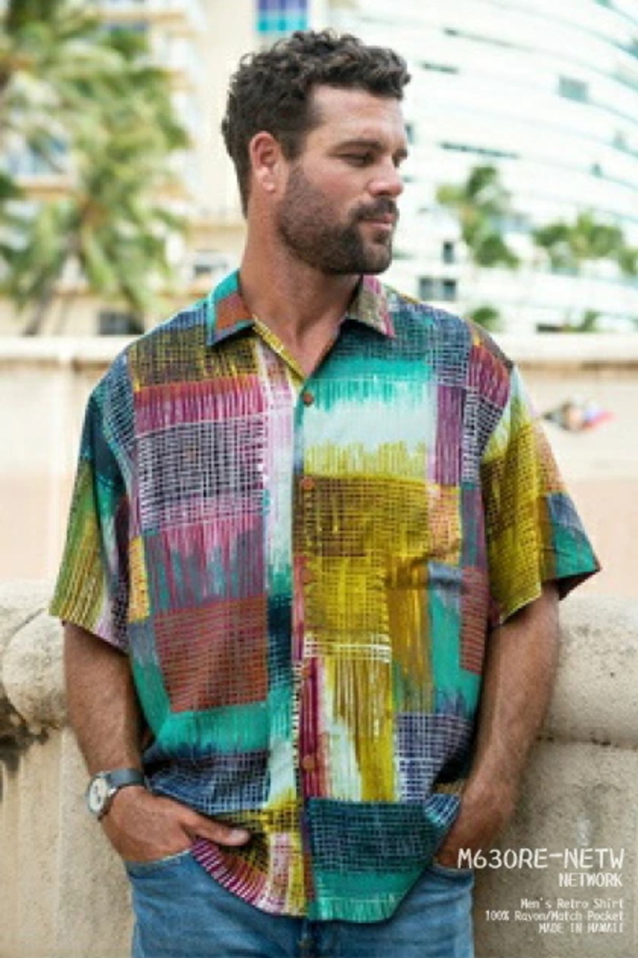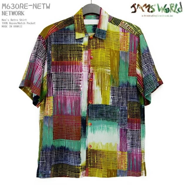アロハシャツ|ジャムズワールド(JAMS WORLD)|M630RE-NETW|NETWORK(ネットワーク)|メンズ|ハワイ製|レーヨン100% (100% rayon)|ノーマル襟(レギュラーカラー)|フルオープン|半袖|アロハタワー(アロハシャツ販売)