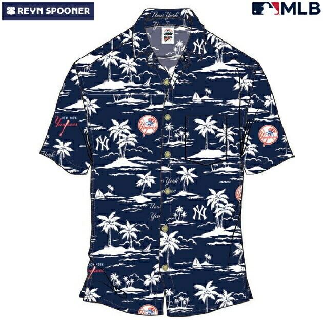 アロハシャツ|レインスプーナー(REYN SPOONER)|B2814-125-19 |MLB メジャーリーグ公式(VINTAGE MLB)|メジャーリーグベースボール ニューヨーク ヤンキース(NEW YORK YANKEES)|レーヨン100% |ノーマル襟|半袖|アロハタワー(アロハシャツ販売)