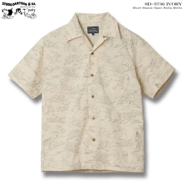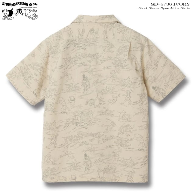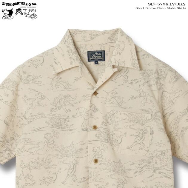 【サイズ:S~2XL】アロハシャツ|ステュディオ・ダ・ルチザン(STUDIO D'ARTISAN)|豚アロハ ダルチ SD-5736 |THE OLDEST MANGA IN JAPAN(鳥獣戯画)|プリント絣|アイボリー|コットン(綿)100%|開襟|メンズ| 日本製|フルオープン|半袖|アロハタワー(アロハシャツ販売) 2026年春夏モデル新作<半袖> 大人の遊び着 アロハシャツ