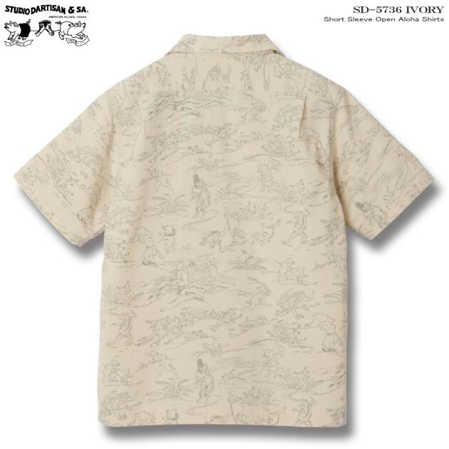 【サイズ:3XL~4XL】アロハシャツ|ステュディオ・ダ・ルチザン(STUDIO D'ARTISAN)|豚アロハ ダルチ SD-5736 |THE OLDEST MANGA IN JAPAN(鳥獣戯画)|プリント絣|アイボリー|コットン(綿)100%|開襟|メンズ| 日本製|フルオープン|半袖|アロハタワー(アロハシャツ販売) 2026年春夏モデル新作<半袖> 大人の遊び着 アロハシャツ